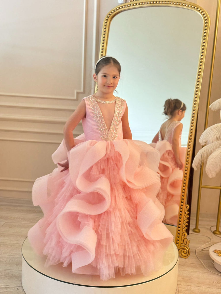 The Pink flower girl dress is a timeless and elegant choice for any wedding. Typically available in floor-length styles, these dresses are often made of high-quality satin or lace. They are adorned with delicate floral embellishments such as lace appliques, beading, or embroidered flowers. From simple and classic designs to more elaborate styles with layers of tulle or organza, the white flower girl dress symbolizes innocence and purity, making it a perfect addition to any wedding party.